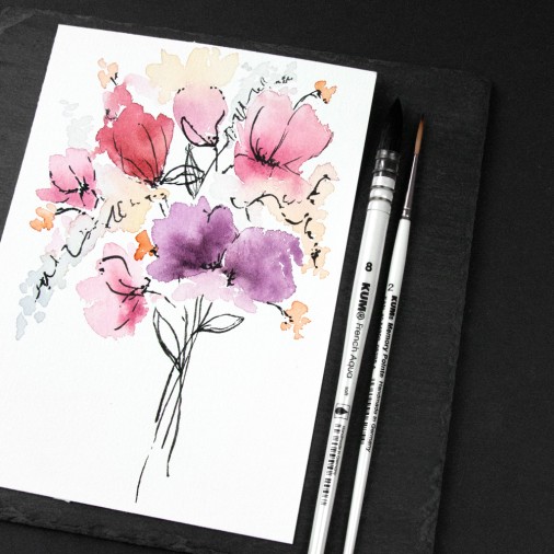 Pinceau à lavis 10mm .mélange de fibres très fines de haute qualité et de différents diamètres assurant une capacité de stockage extrêmement élevée. Le KUM French Aqua est parfaitement adapté pour : les lavis la transition de couleurs douces.
